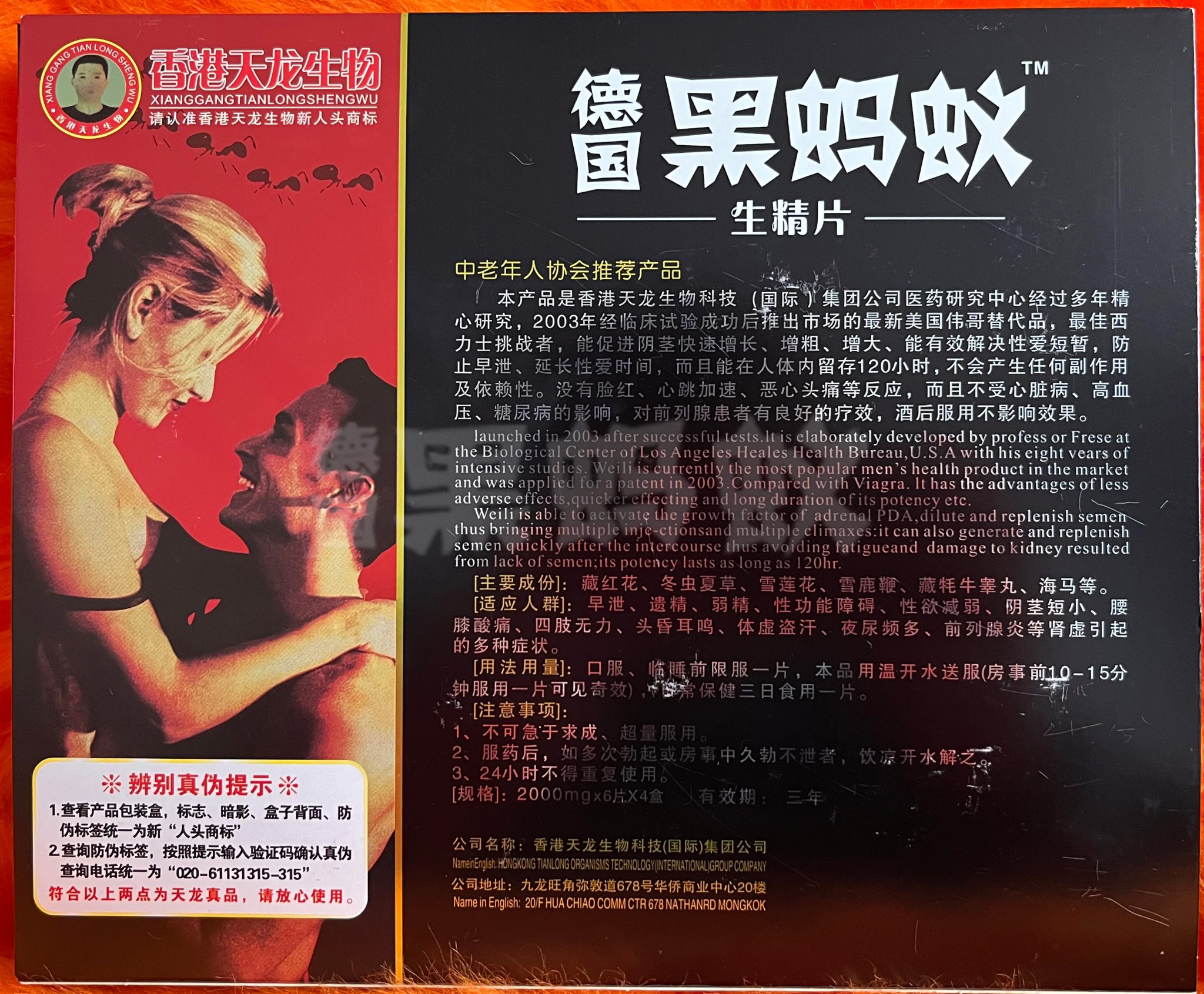 德國黑螞蟻生精片是由香港天龍生物技術有限公司研發的專業男性保健品,結合傳統中醫智慧與現代生物科技,專門解決現代男性常見的健康問題:
